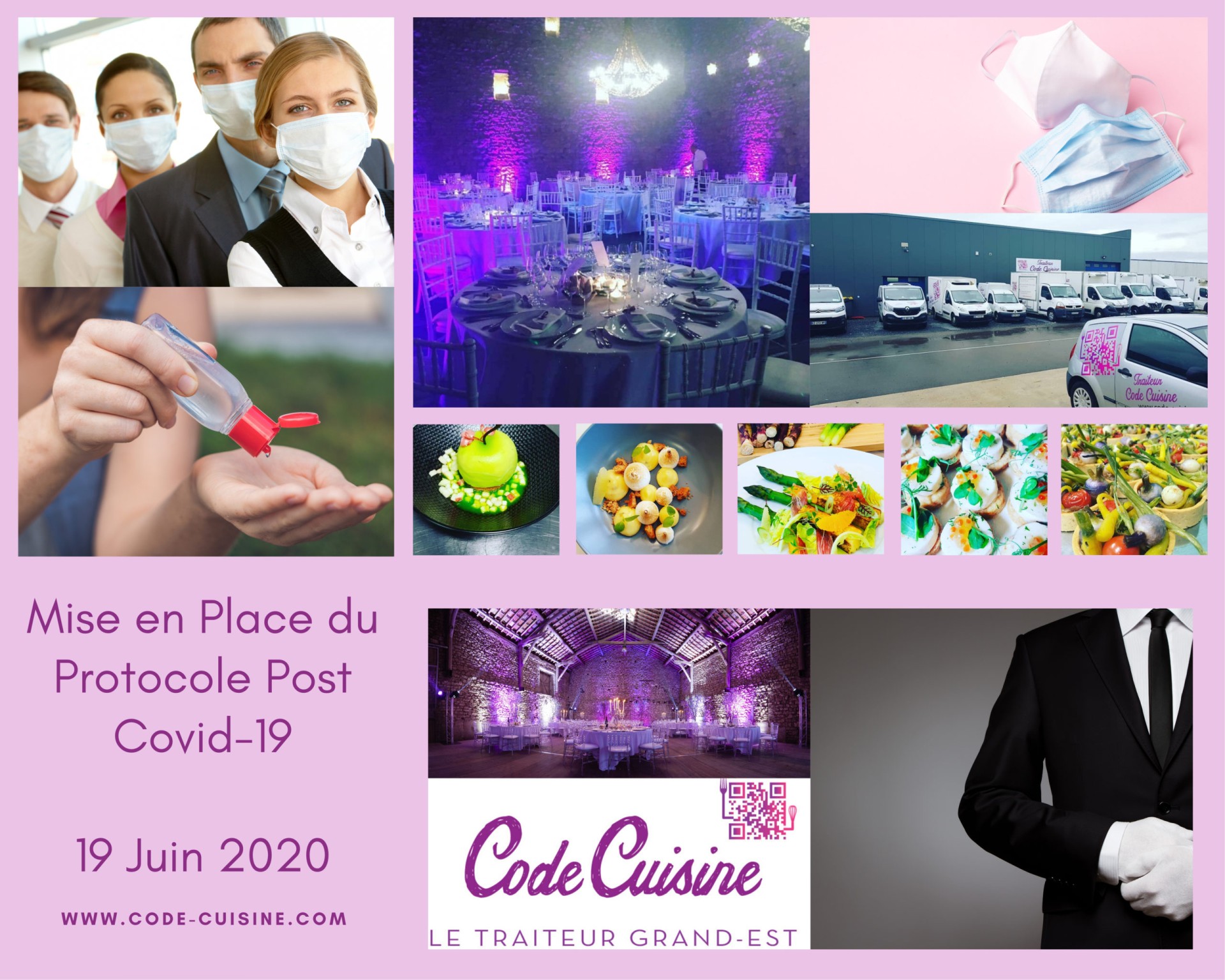 Nous avons mis en Place un protocole complet Post Covid-19 interne à Code Cuisine afin de garantir des prestations extérieures dans la plus grande sécurité de vos invités et de notre personnel.