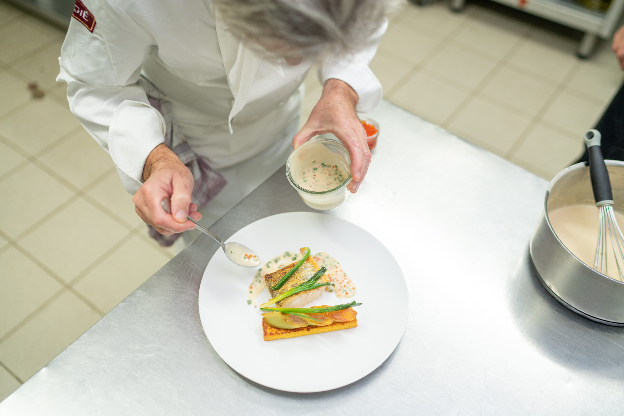 Cuisine autour des cartes végétariennes et flexitariennes. Les plats sont soigneusement présentés et
